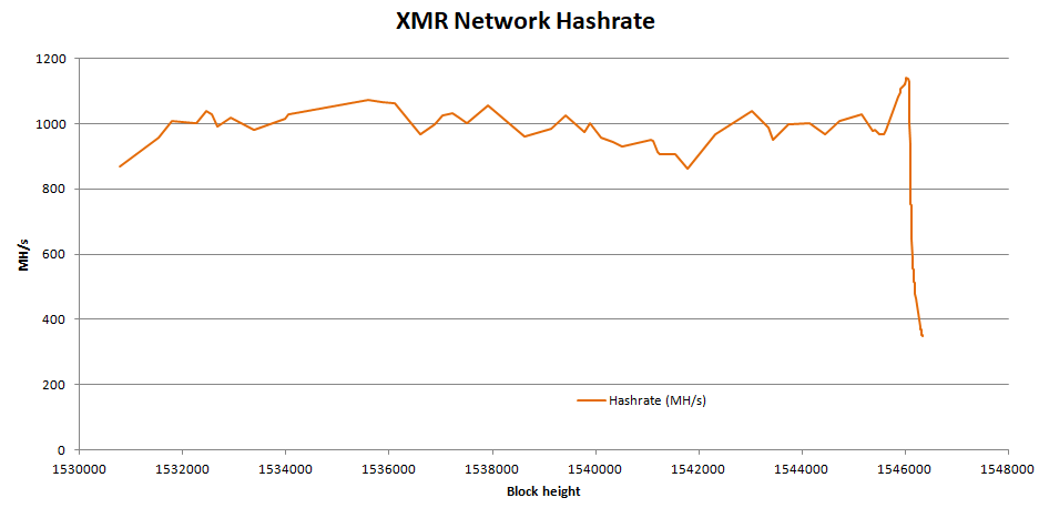 "Monero's hashrate drop from about 1.16 GH/s to 157 MH/s, which led some to speculate most of the network's hashrate were ASICs.
