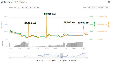 The cause of the downfall between the 1st to the 6th September was most likely the Chinese ICO ban. Because even though Metaverse had an ICO back in 2016 and was therefore not directly affected – the price of all Chinese coins took a deep dive during this time, as for the worries, which steps China might take on crypto currencies in general. In this case, it shared the same fate as NEO, which lost about half its value for the same reason during the same time.
