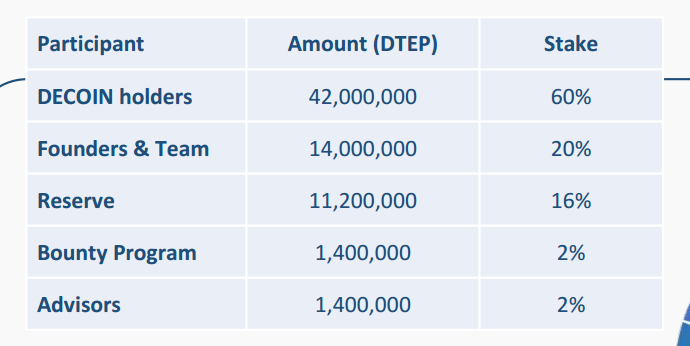 Following the end of the sales, the total sold Decoin will be grossed up to permit additional allocation as;