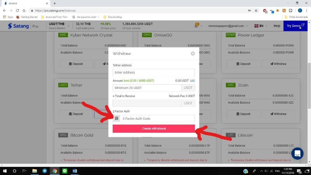 กด withdrew ได้เลย….หากมีรหัส 2-factor ก็ใส่แล้วก็ค่อยกดส่ง (Enter is 2-Factor code, and click “Create Withdraw”)