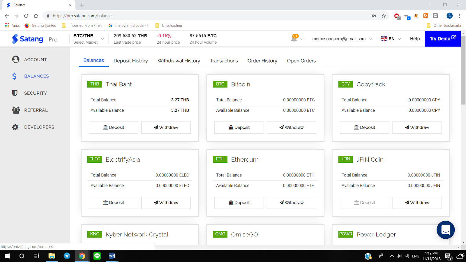 หลังจากนี้ก็เริ่มโอนเงินไทยบาท จากแบงค์ที่ Verify ไปเมื่อกี้ เข้าเว็บเทรด Satang Pro เตรียมพร้อม Arbitrage !!! (Deposit Thai baht (THB) from Thai bank account to Satang Pro)