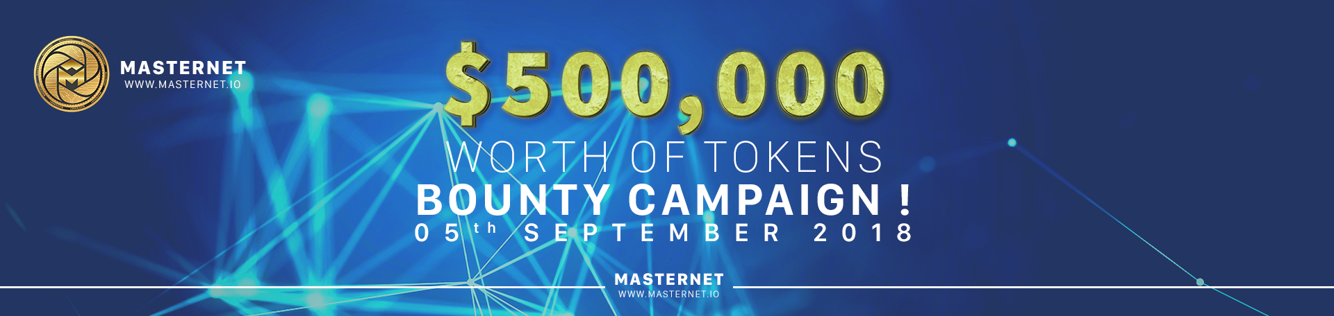 Masternet is also organizing a bounty program that worths $500,000. You guys can follow the link below to access: https://bitcointalk.org/index.php?topic=5010706.msg45211461#msg45211461
