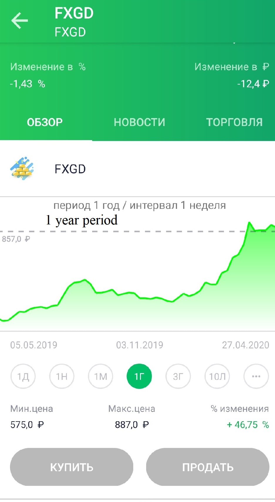 If we look at the graph below, then we can see then within 1-year gold haw grown-up for 46, 75 percent. None of the banks don't give you such a big percent on deposit.