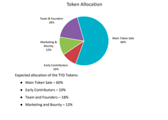 The only currency that will be used on the platform is TYD token which is powered by Etherium. Its price now is 1 ETH for 12 000 tokens. Bot the project gives a huge bonus for those who will buy tokens in pre-sale period another in first 3 weeks of mail-sale period. If you join it in pre-sale period you get 25% bonus (15 000), in the first week of main sale you'll get 15% (13 800) , then 10% (13 200) and then 5% (12 600). In my opinion it's a good reason to join project as soon as possible if you are interested. 200,000,000 TYD are planned to be issued and 140,000,000 are planned to be offered.TYD Token will give access to TYDO Statistics Portal, where TYDO will publish relevant data and information, which guarantees full transparency.