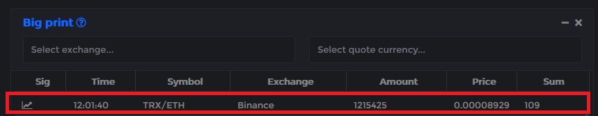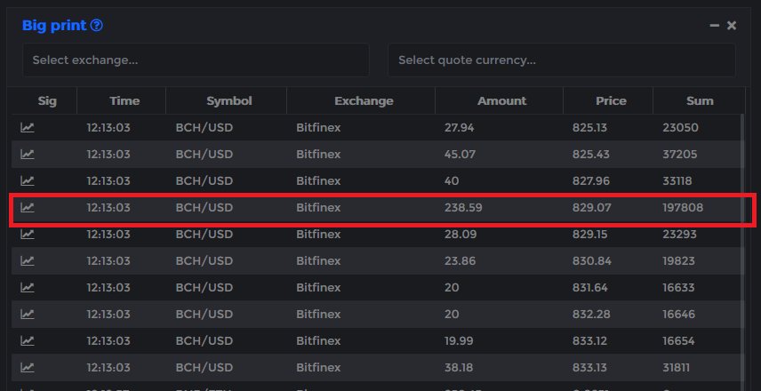 In last posts I've described how to use "big prints" scanner window when trading on Cryptocurrencies.