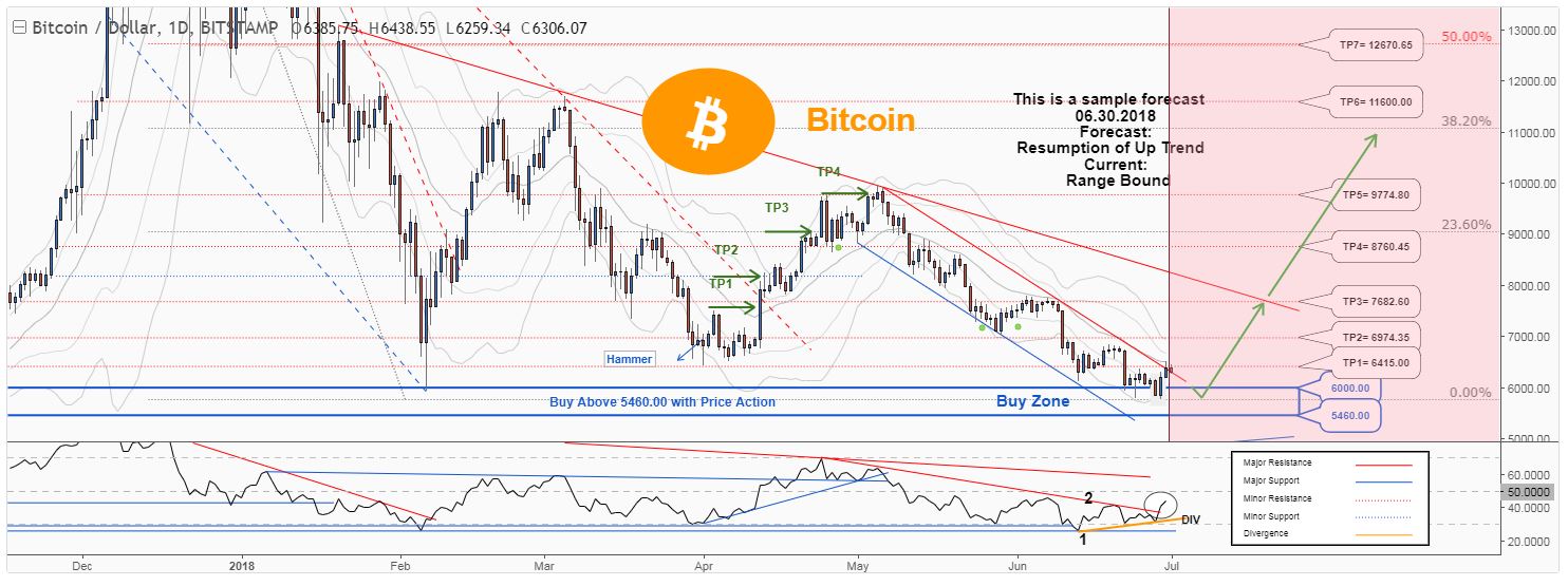 . The price is in a range bound and we forecast the uptrend would resume.