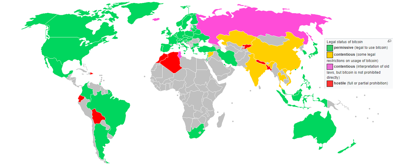 Some countries incorporated laws that allows the use of Bitcoin and other cryptocurrencies, not as a legal tender but mostly to hold and transact like a commodity. The picture below depicts where each country is with respect to legalizing the use of cryptocurrency.