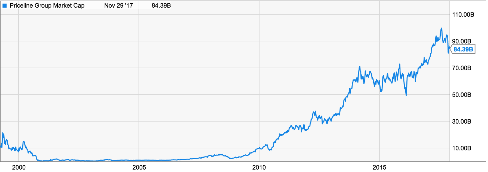 Other notable companies that survived the dotcom bubble like Intuit, Priceline, Adobe and also took 10+ years to regain their peak bubble valuations (although like Amazon, they’ve since gone on to grow way past it).