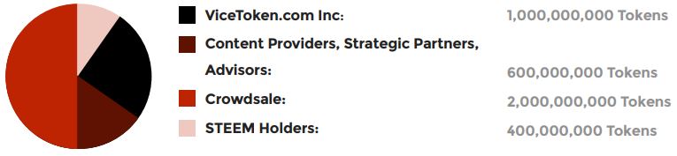 ViceToken.com will generate four billion VIT in the genesis (initial) block. We will allocate VIT as follows