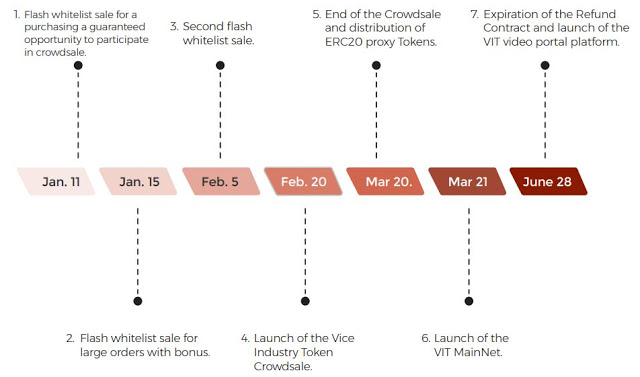 The rate of generation will decrease by 1% in each additional year until the tenth year after genesis, at which point the amount of VIT will remain constant. Crowdsale purchasers will pay ~$0.05 of ETH per VIT, with a minimum purchase of $50 of ETH. Vice Industry Token Inc. will airdrop 400,000,000 (10%) of the genesis tokens to STEEM token holders as of block number 18,500,000 on the STEEM Blockchain. The airdrop to STEEM holders will be distributed by January 1, 2021, and possibly earlier, in a manner and time period of Vice Industry Token Inc’s choosing.