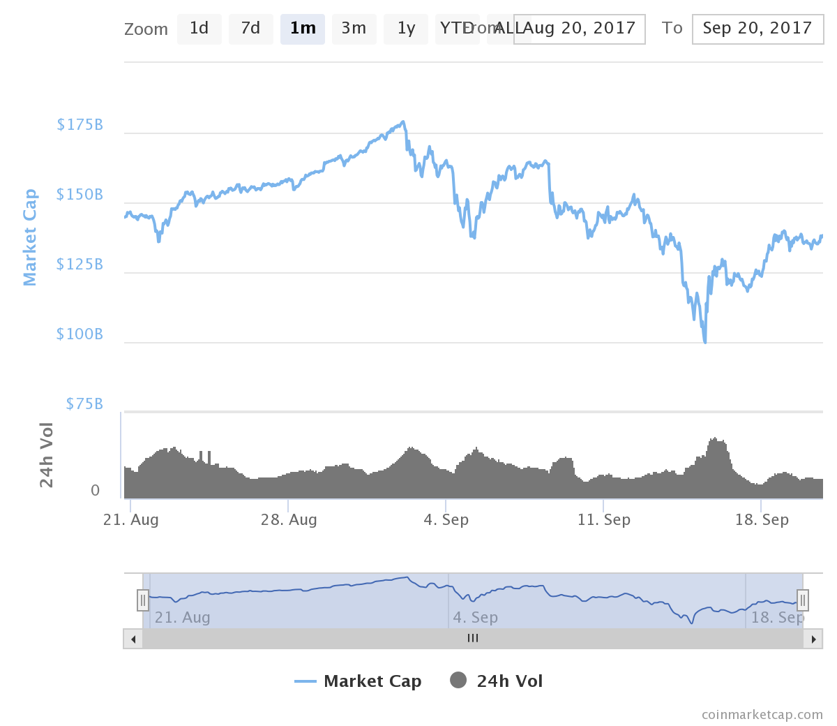 We THEN crossed the $170B mark just days later after that on 8/31/2017 around noon UTC time / 8 am EST.
