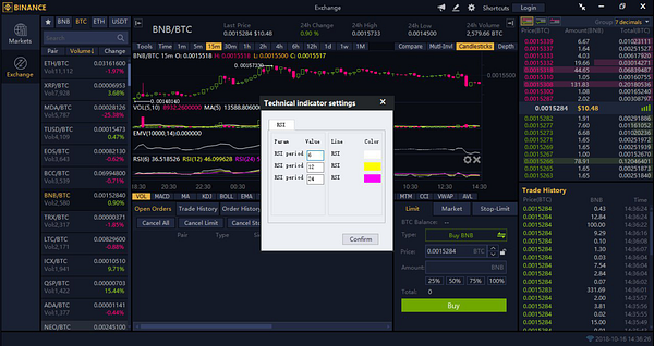 - We recently updated Binance’s PC platform to Version 1.6.0. This update features multiple time periods for Relative Strength Index (RSI) display.