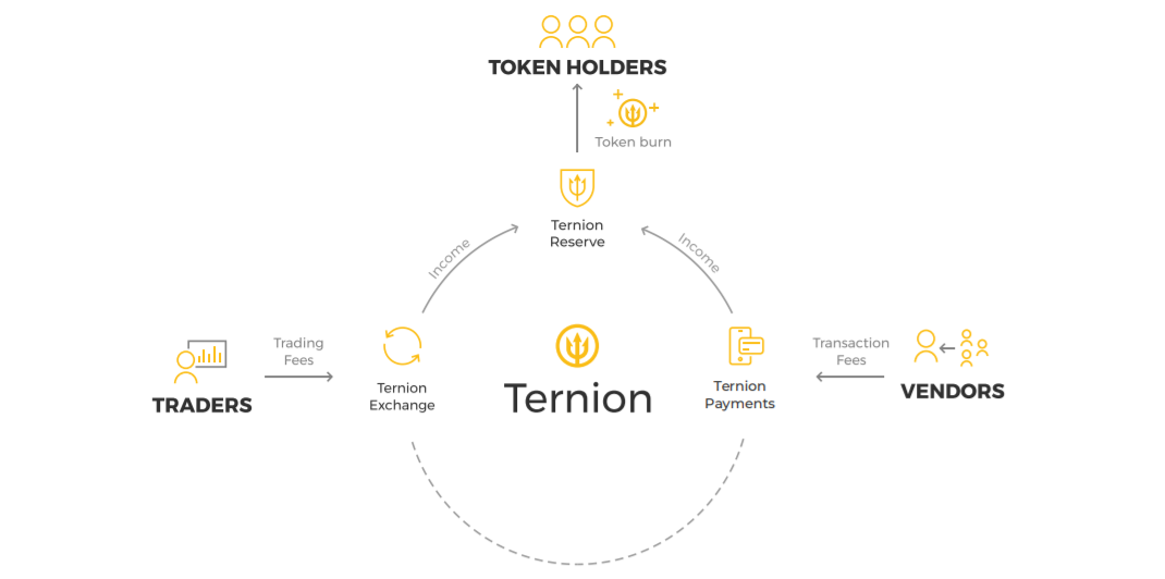 Платформа Ternion представляет собой лицензионный гибридный цифровой обмен. Ternion.Exchangе преодолевает разрыв между традиционными и децентрализованными финансами. Торговая платформа будет первоначально доступна для Windows, IOS Mobile и Android. Система платежей Ternion работает с помощью платежного шлюза, возможность подключения которого определяется непосредственно поставщиком и предусматривает возможность выпуска дебетовых карт для своих пользователей. Участники проекта могут оплачивать услуги в фиате благодаря API-технологии Ternion. Мультивалютный обмен поддерживается платформой во всех направлениях. Работа биржи Ternion и процессора платежей платформы в совокупности составляют две бизнес-модели фонда ликвидности проекта. Создатели проекта направили 25% собственного капитала в резерв для последующей глобализации платформы.