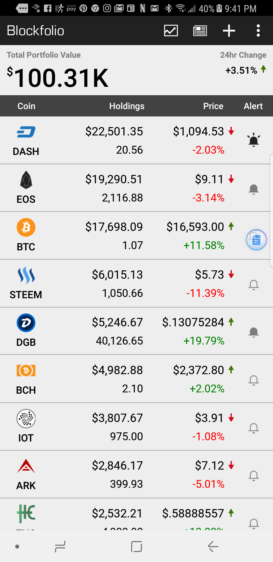 100K in Alt Coins and BTC!