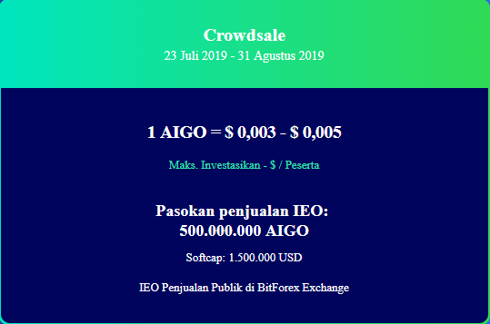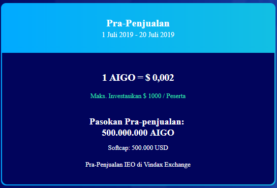 Fees for 1 AIGO tokens: 0.002 USD (Pre-Sales) & 0.003-0.005 USD (Main Sales)
