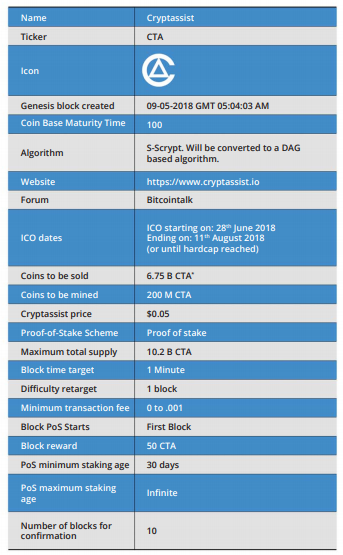 Cryptassist aims to create a cryptocurrency can be used in everyday life. TheCryptassist platform will include a Webshop where Cryptassist will offer products and services and merchants can easily add their product or service to the Webshop with a low service charge and dropship them directly to customers them. Customers will be able to pay products and services with one of the 50 best cryptocurrency. The merchant will receive payment in the form of fiat into their bank accounts or in the CTA into their particular Wallet Merchant or a combination of both.