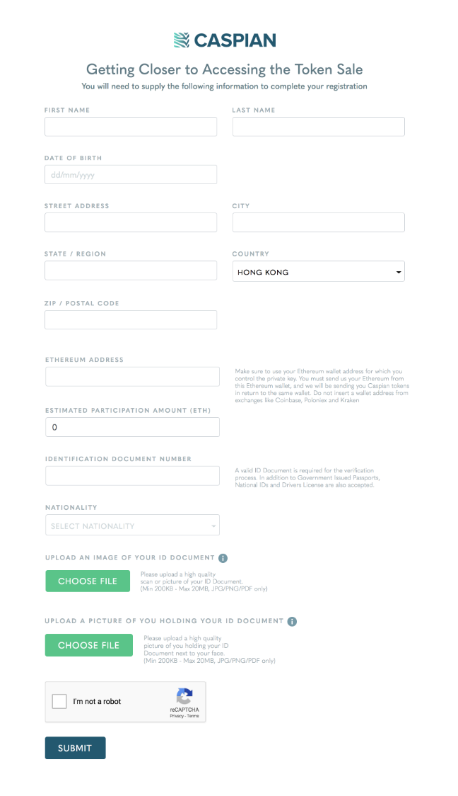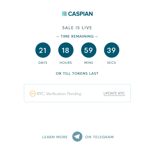 Whitelisting will open on Wednesday, 19 September at 9:00 am BST and last through Thursday, 27 September at 12:00am BST. The Caspian team will begin KYC at the end of the first day of Whitelisting on a first-come-first-serve basis. You must follow the instructions and complete the whitelisting process during this time in order to participate in the public sale.