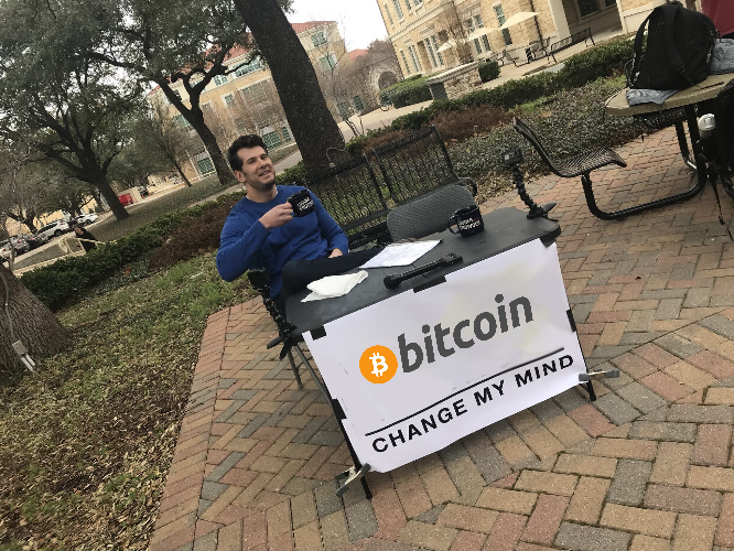 Wow, that's great and i really liked his marketing skills because Change My Mind, instead saying as change your mind and use Bitcoin as medium of exchange. Thanks for sharing. 🙂