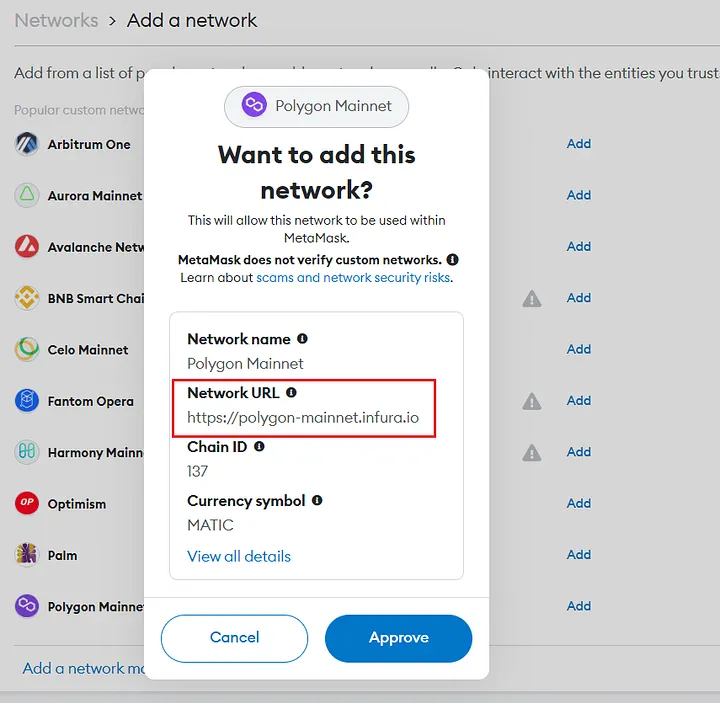 We are interested in the last position in the list ‘Polygon Mainnet’.