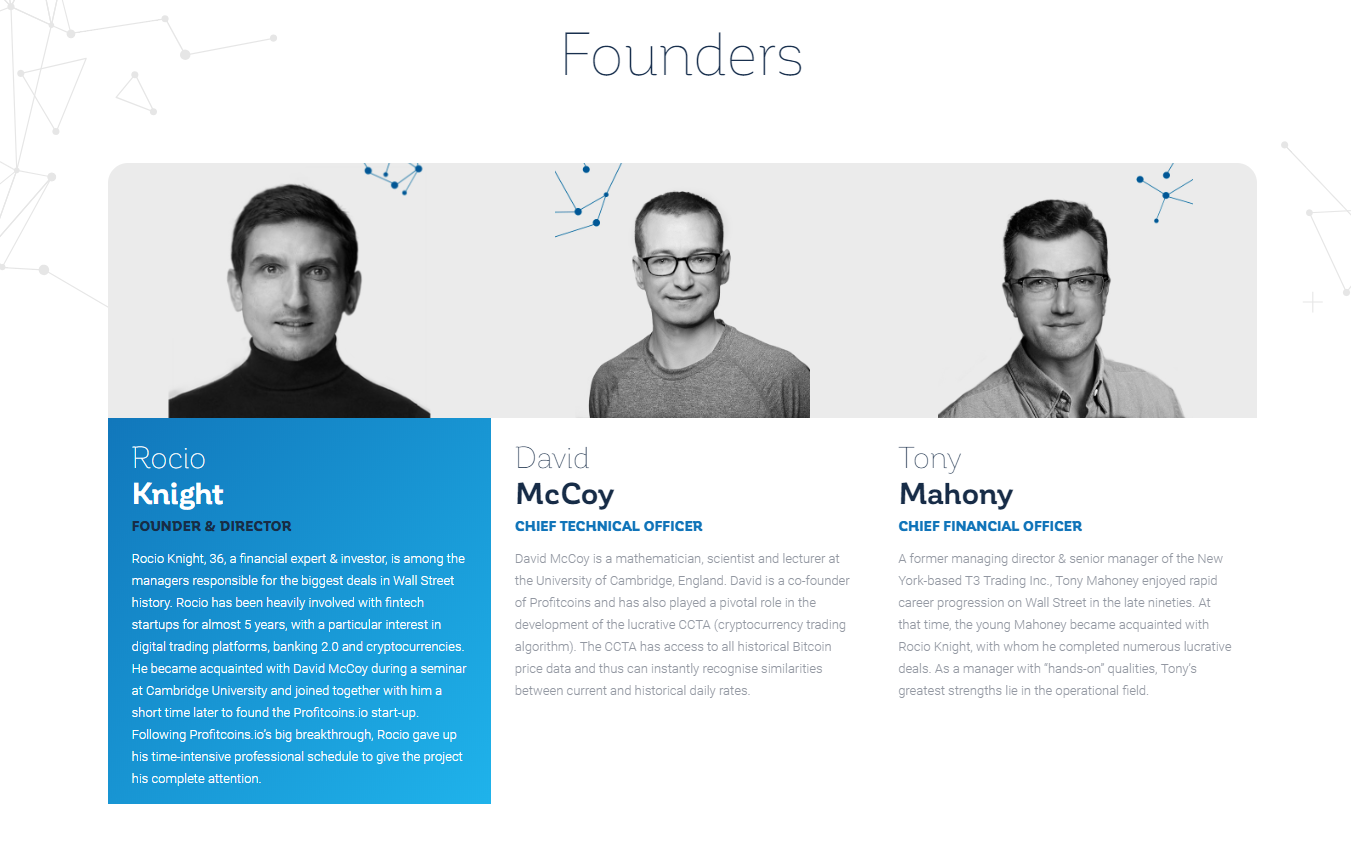 Founder Rocio Knight has also LinkedIn account https://www.linkedin.com/in/rocio-knight-44b802111 but again with only one picture from Profitcoins website. Looks very SCAMMY but on the other side if you are preparing some SCAM, there is big chance that this kind of mistakes wouldn't happen if you are not stupid...