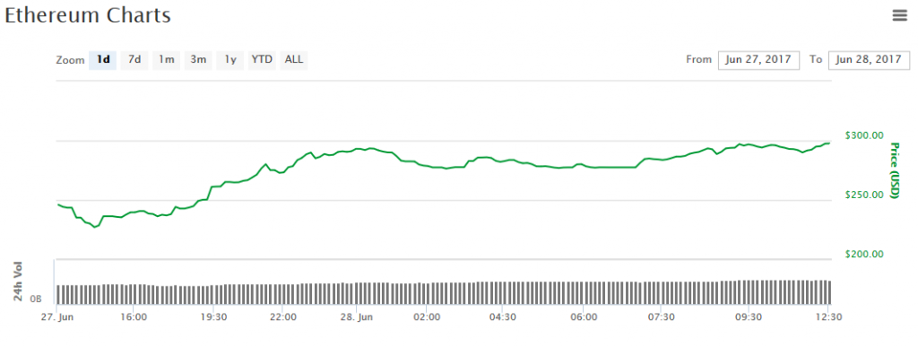 Ethereum Price Rebounds Past $300