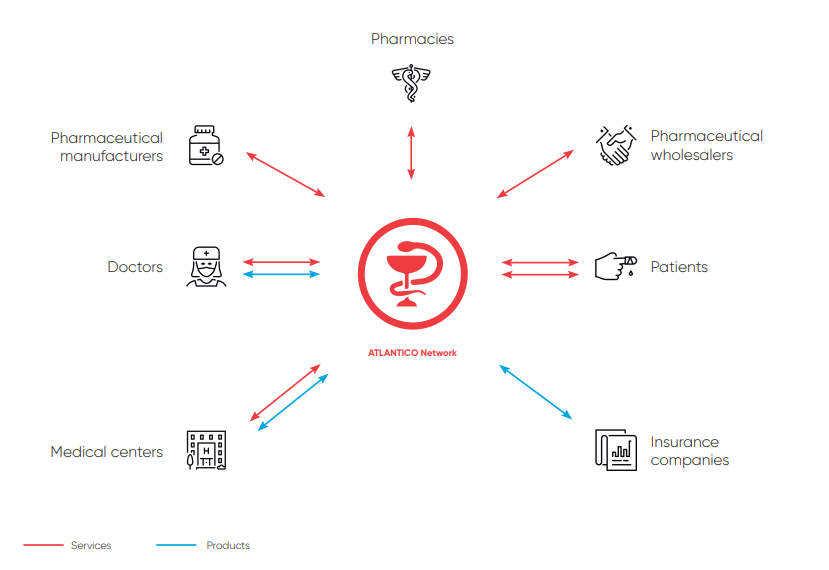 With the idea of organizing the remote and secure interaction in the market of medical and pharmaceutical products and services, the main objective of Atlantico Network is to develop an ecosystem that prevents medical, pharmaceutical and insurance companies from forming monopolies, while building Transparent and risk-free relationships to improve your level of services.