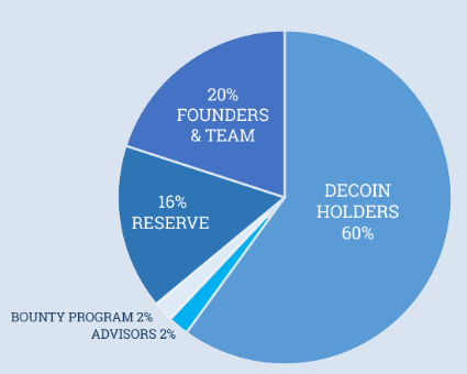 | Q2 – 2018 | Exchange Platform Beta Test (D-TEP); Pre-ICO stage and ICO Stage; Adding DECOIN on several exchanges; Wallet Launch + Commencing distribution of DECOINS. |