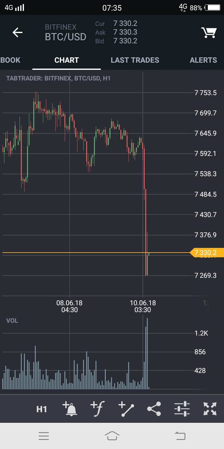 It broke 4h uptrend at 7550 and then dumped a lot quicker