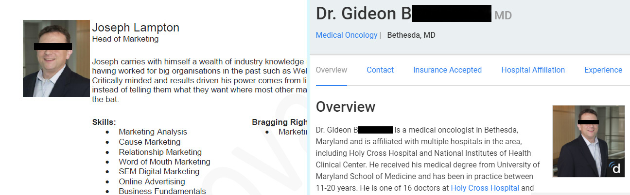 Our investigations looked into multiple search engines with no success of finding anything about the team members. The list included Google (US), Bing, Yahoo, Baidu (China), Soso, and Meta engines that compile results. While talking to ICO investors to seek info on Ethereum addresses used for the initial ICO, one investor gave us a tip about another Russian search engine Yandex that was turning up results. Which brings us to the following photos and links to the team members stolen identities in order of the whitepaper. Please visit the websites and browse them for yourself to confirm that these sites are not fake and the images have not been fabricated. You may notice that all of the photos have been flipped horizontally to cause the reverse image searches that were attempted to fail. The team members have been removed from the Fitrova website and the whitepaper but don’t worry...copies of the originals were made and will be provided. All of the ICO review websites also retain their posted team members.