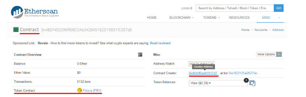 [A] At time of discovery this address had 1 billion Fitrova (14% of total supply)
