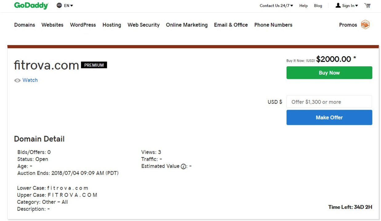 The Fitrova.com domain is up for auction, with an end date of July 4th, 2018
