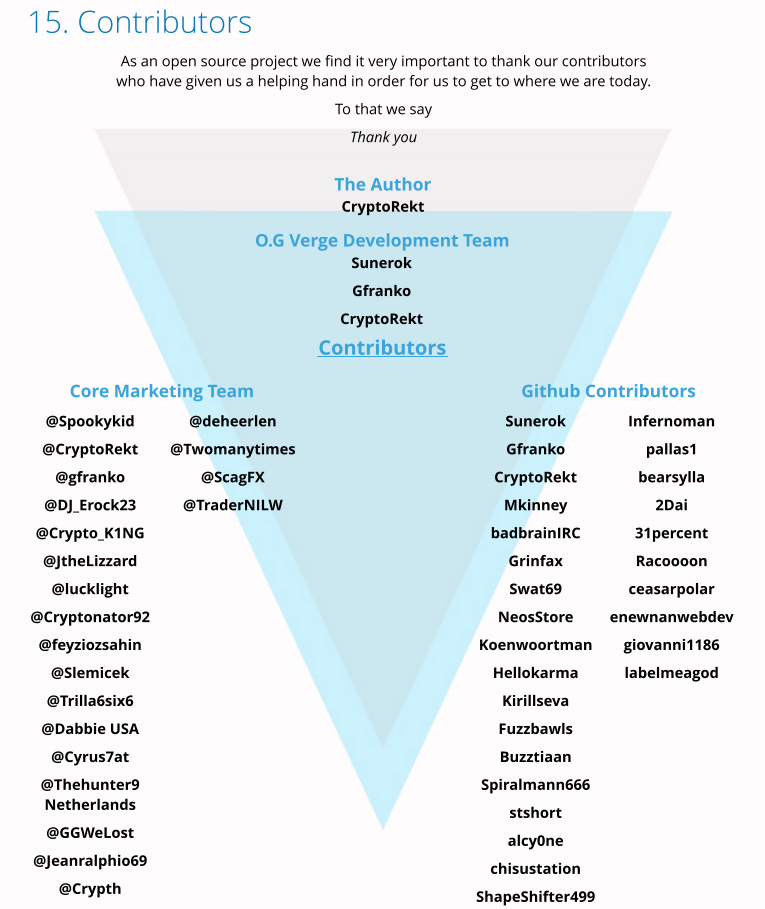 In this category, I take a look at the size of the team working on the project, asses if they are capable of fulfilling their promises, and if they are proud of their work. Verge is a open source project, and, because it is a privacy coin, it makes sense that the people involved want some anonymity, but the size of the team appears to be much smaller than the Verge Blackpaper suggests: