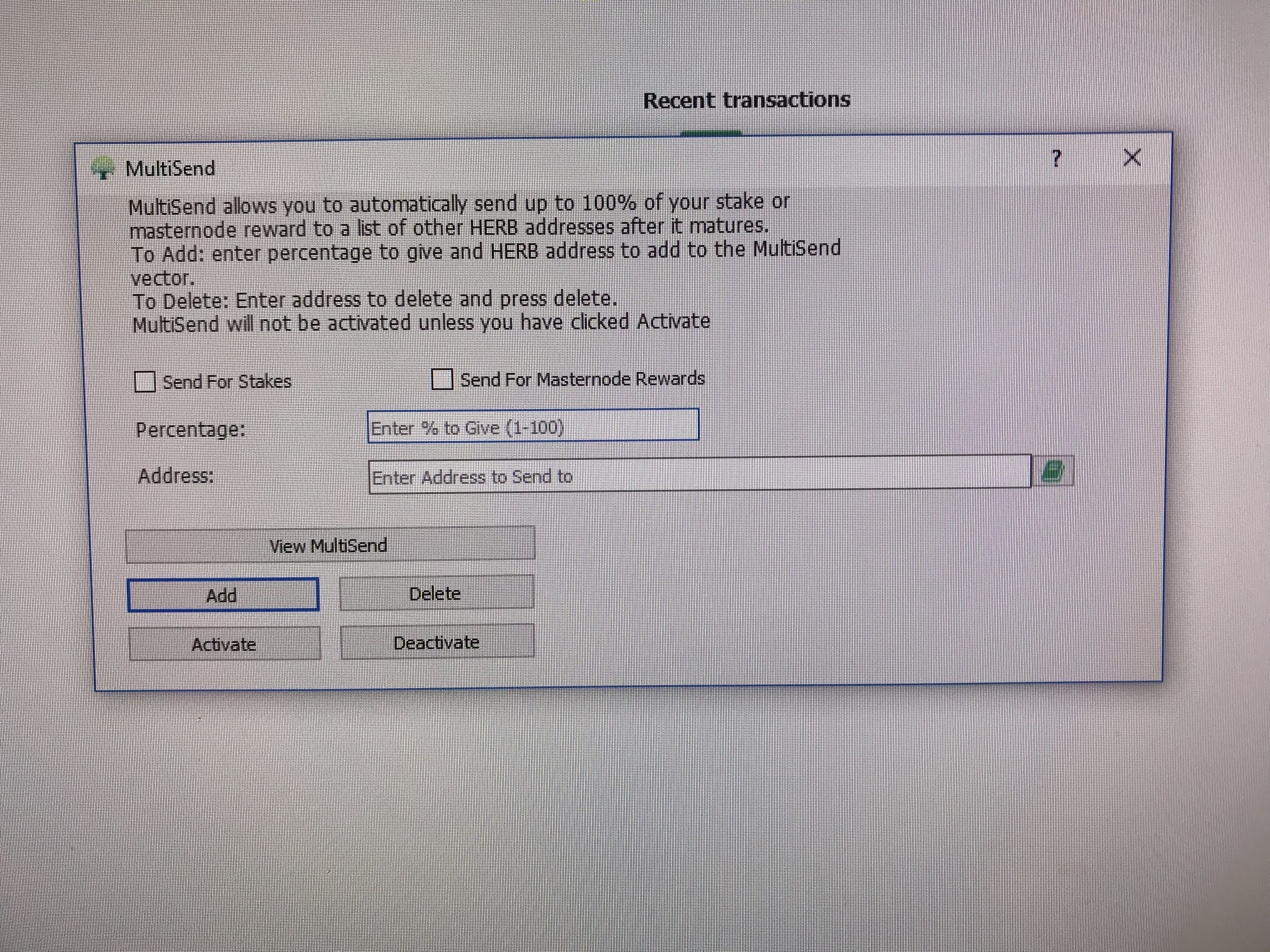Also, it has feature called Multisend, which you can activate it and it will send the rewards you received from staking or Masternode to the address you choose. You can add multiple address.