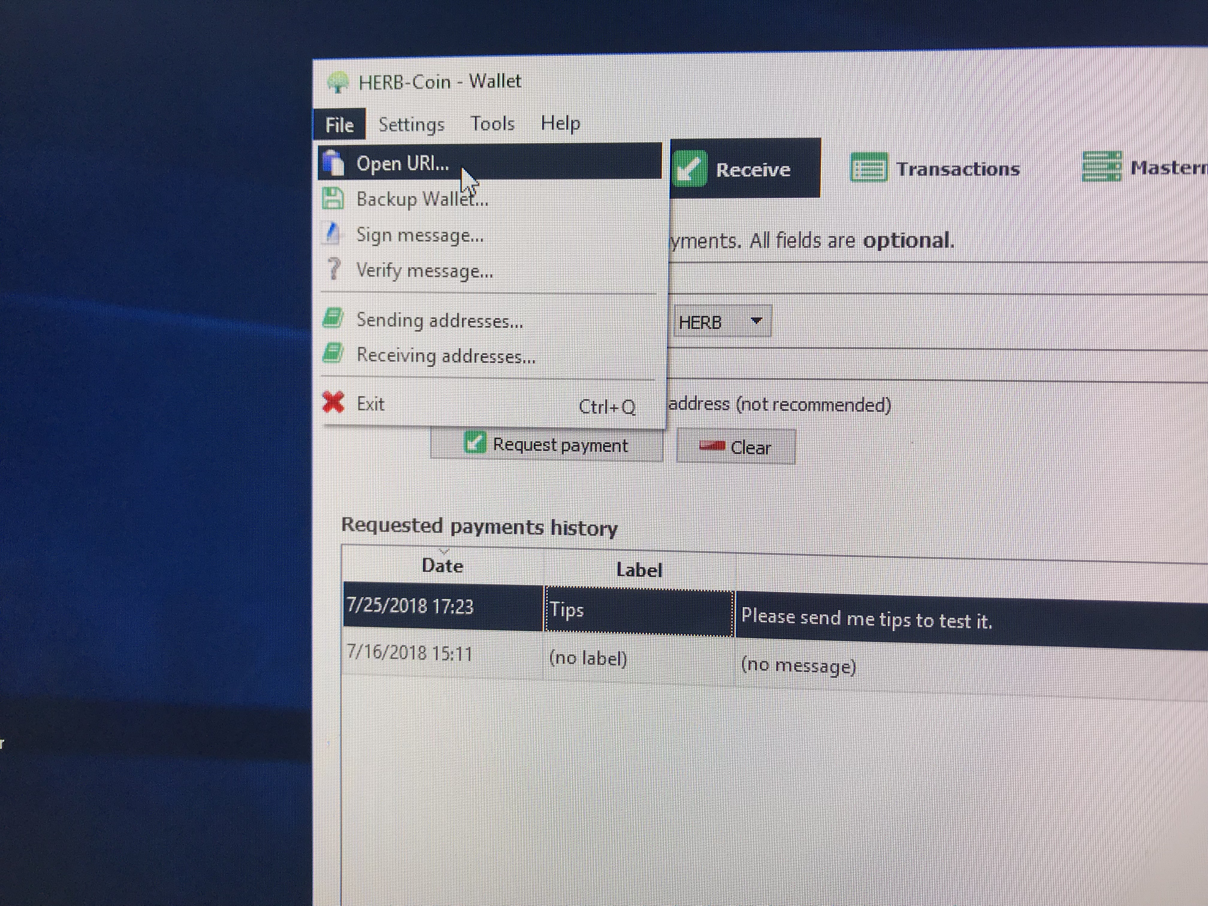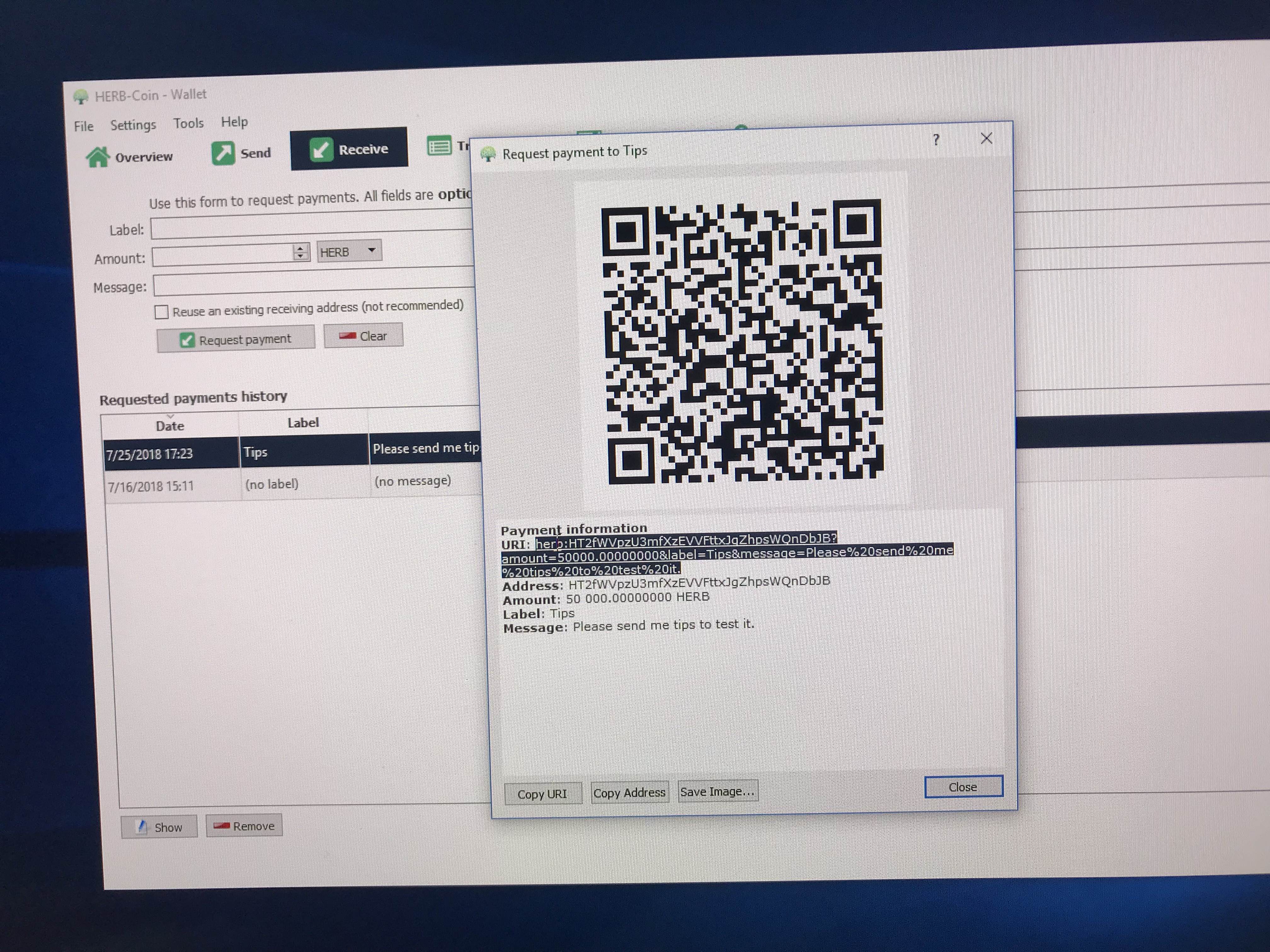 You can add message, label and amount you are trying to get paid. Also, you can copy the URI which then paste it in URI field to get the message.