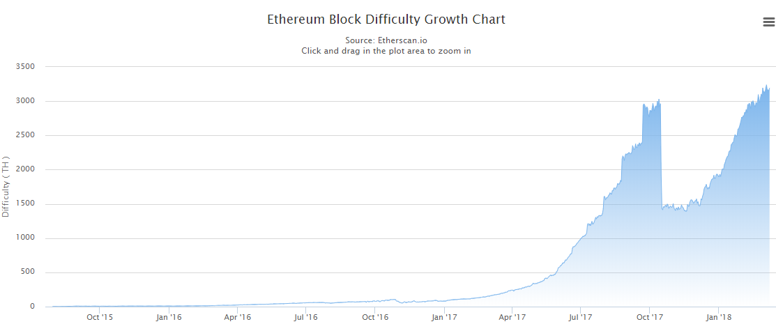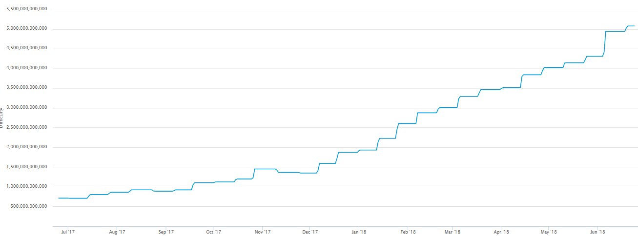 Well sadly that’s not the case either. Here’s a look at the rising difficulty of Ethereum in recent months: