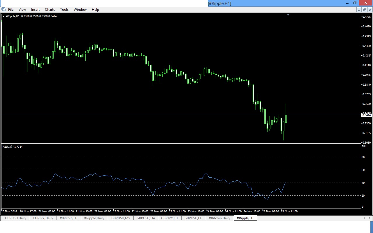 In the hourly Chart price makes a bullish candle around 0.3000 to 0.3100. So it is the first sign of bouncing back. Second sign is RSI. Look at RSI how RSI level increased and it broke its downward trend which is showing the reversal of price of Ripple. So I strongly recommend the buy of ripple right now.