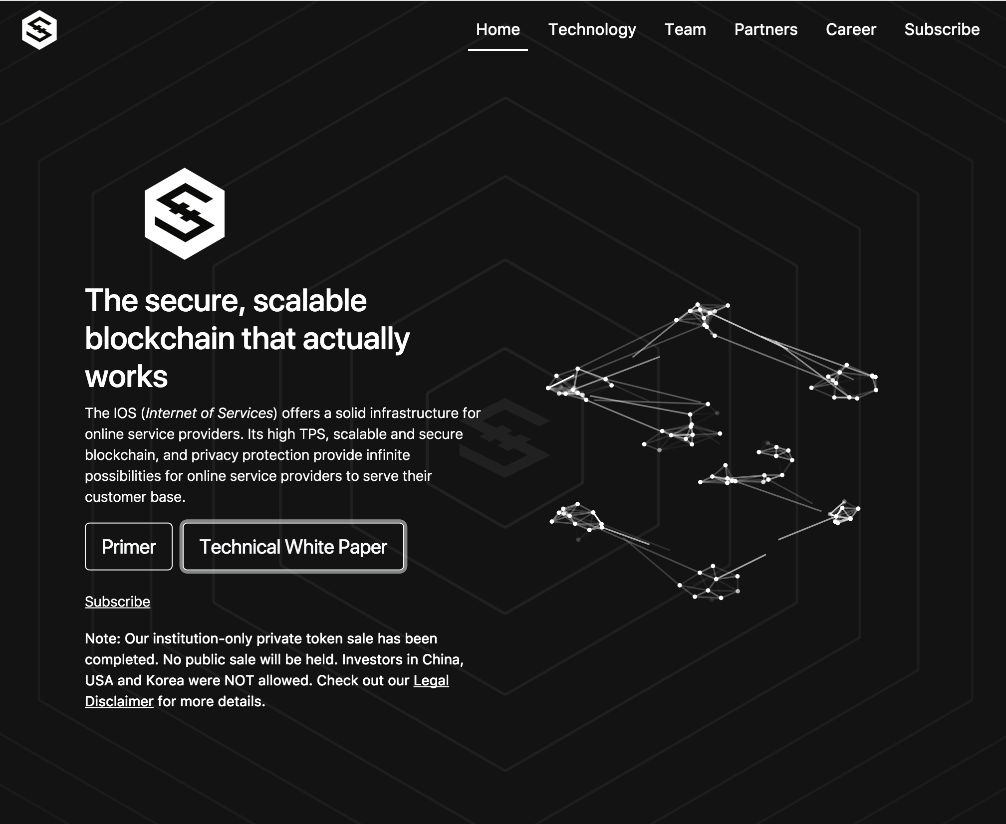 A screenshot of their main website. You can see that their vision are quite high, a technology with high TPS, scalable and secure blockchain, and privacy protection. Basically, they are to do everything.