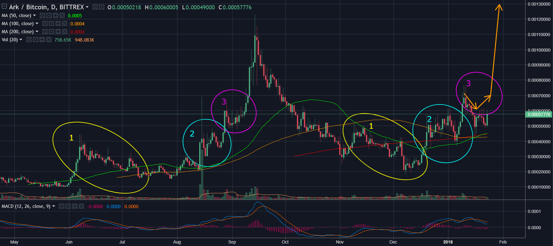 "Based on positive returns to the market after this news acting as a catalyst, I believe that if we see the pattern below start to complete within the next 4 weeks, the price of Ark is likely to reach new ATHs. Around the the 25th January is where I feel the gains will most likely occur.