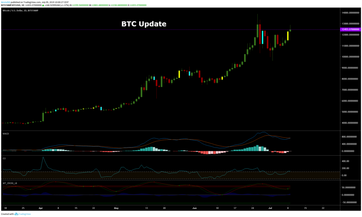 Bitcoin broke the $12,000 level in the previous session with a closing at the $12,398 level. Currently at around $12,480, the BTC’s technical situation is rather positive with a WaveTrends that has crossed over again, a CCI in its overbought area and a MACD that is about to cross.