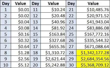So on day 31 this will be 10,737,418.