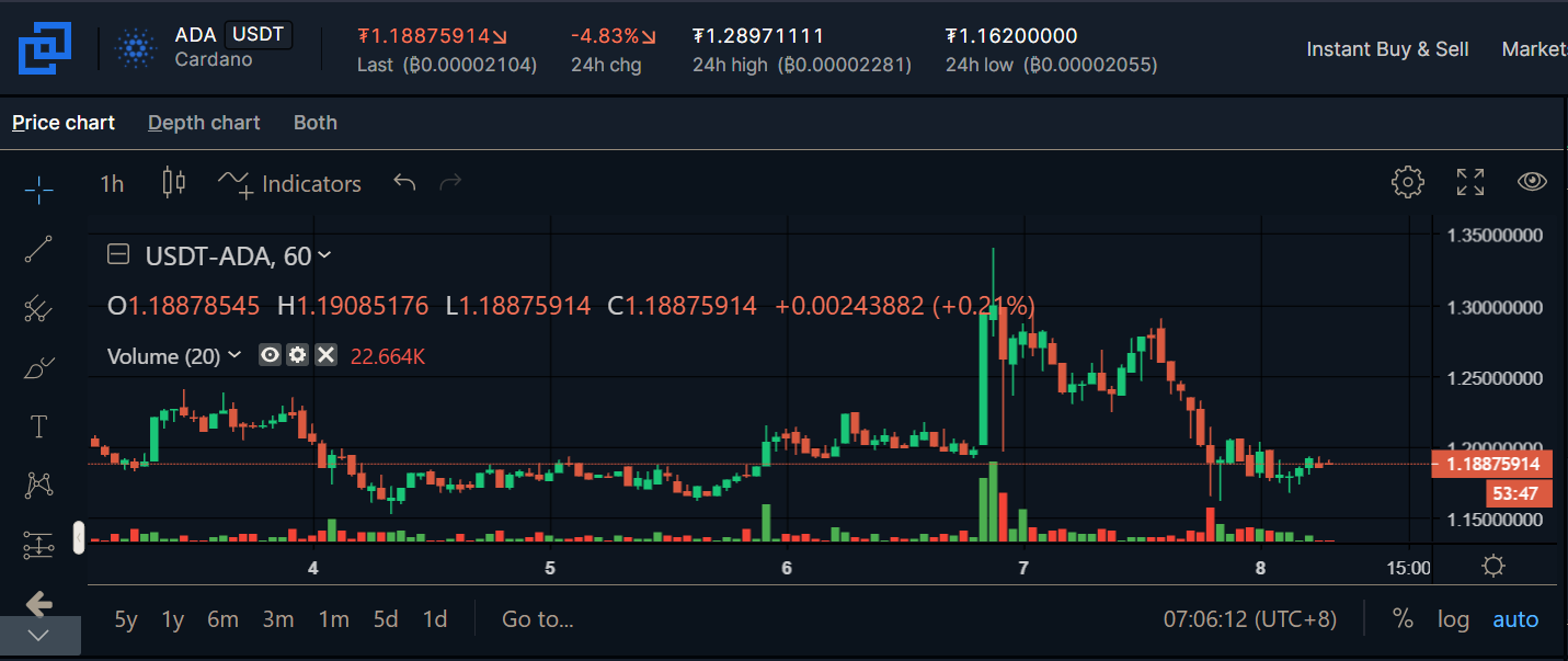 Ich habe gerade Cardano (ADA) gekauft, weil ich ein Ersatz-#USDT habe und nicht möchte, dass es sich hinsetzt und kein Interesse gewinnt. Nachdem ich gesehen hatte, dass die Preise "regelmäßig" und "zyklisch" gefallen waren, nutzte ich die Gelegenheit, einige zu einem reduzierten Preis zu fangen, aber sie nur zu ihrem aktuellen Höchstpreis zu verkaufen, den sie vor einigen Tagen erreicht hatten.