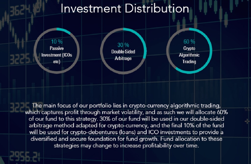 30% of our fund will be used in our double-sided arbitrage method adapted for cryptocurrency,