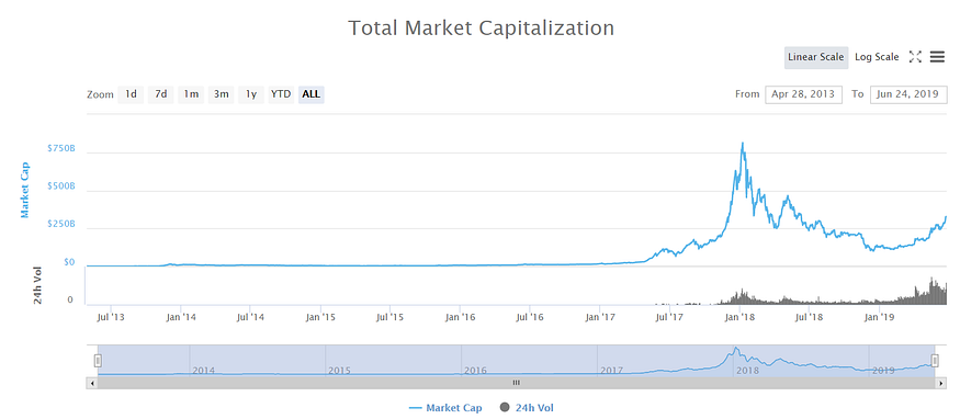 As of june 2019, there are more than 2000 cryptocurrencies in the world. The main cryptocurrency — bitcoin with capitalization of 140 billion dollars. This is the cost of all the obtained bitcoins on the market. The total value of cryptocurrency market is estimated to be 260 billion dollars. A fairly big capitalization and a large variety of cryptocurrencies make this system really stable. If five years ago you could argue the development of cryptocurrencies, now this area is evolved and can grow exponentially. Traditionally, information about cryptocurrencies can be obtained from an analytical portal https://coinmarketcap.com. In the future, we’ll take a look at other tools