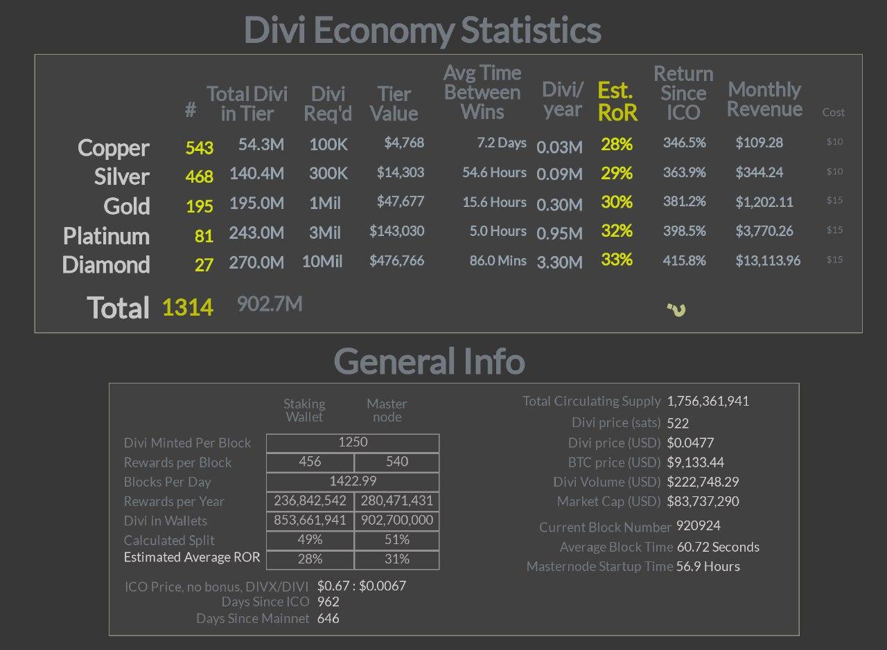 Divi Masternodes and Staking statistics: