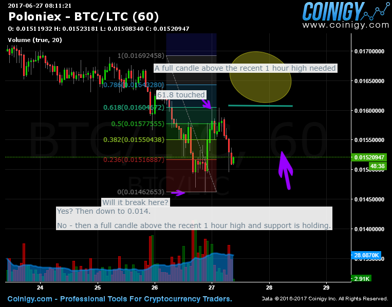 Overnight it has reached 0.0151 and bounced off that level then hit the 61.8% level and has come back down again to test circa 0.0151 again. https://www.coinigy.com/s/i/59520d64053d9/