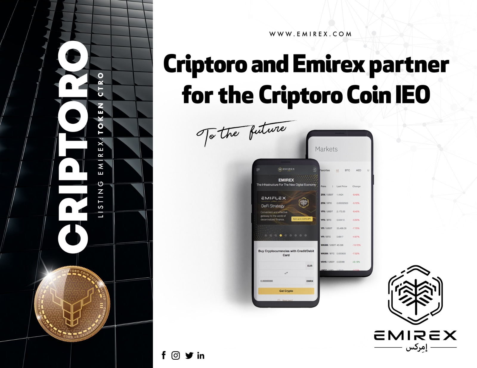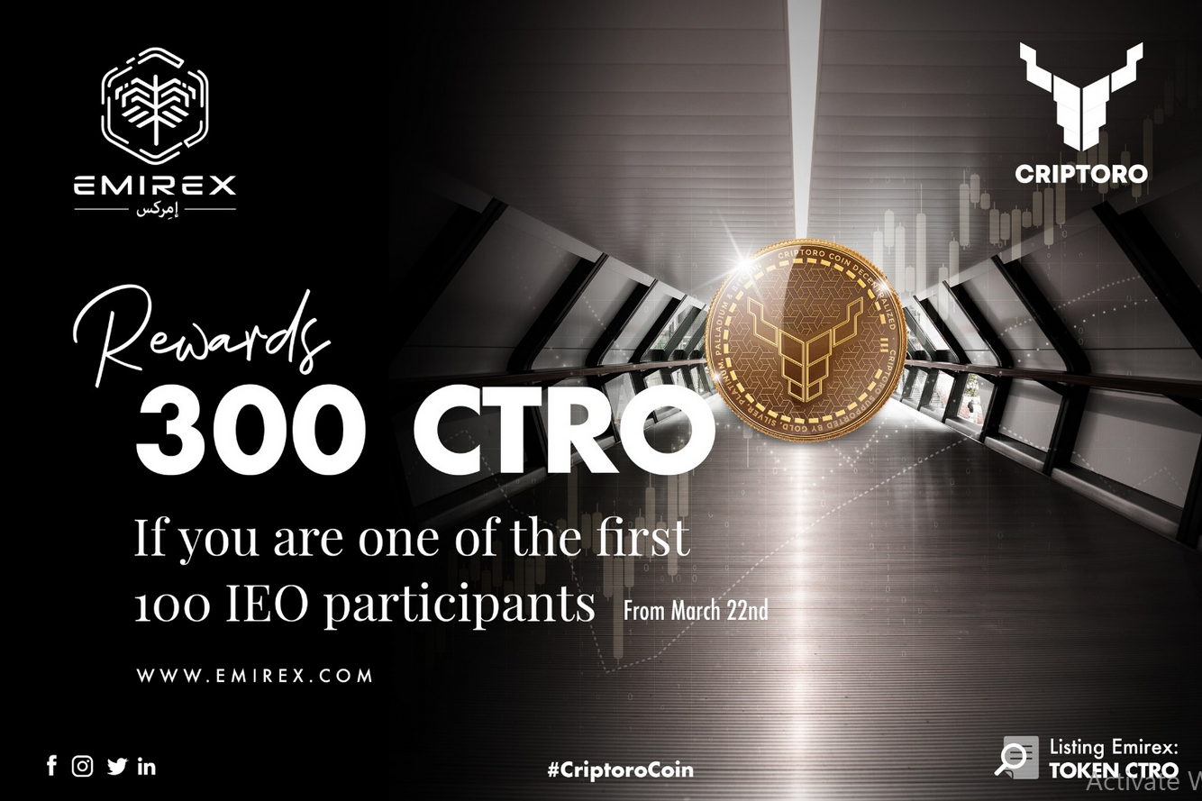 Emirex is excited to announce an IEO (Initial Exchange Offering) partnership with Criptoro, a fintech multi-services and multi-products company. Emirex with its highest volume of business and trust generated in the middle east is keen to facilitate promising projects and deploy their full potential on the market, for which the exchange is going to list the Criptoro Coin utility token (CTRO) and provide it every support.