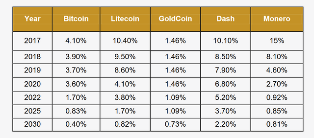 GoldCoin’s inflation rate is slow and consistent as compared to others: