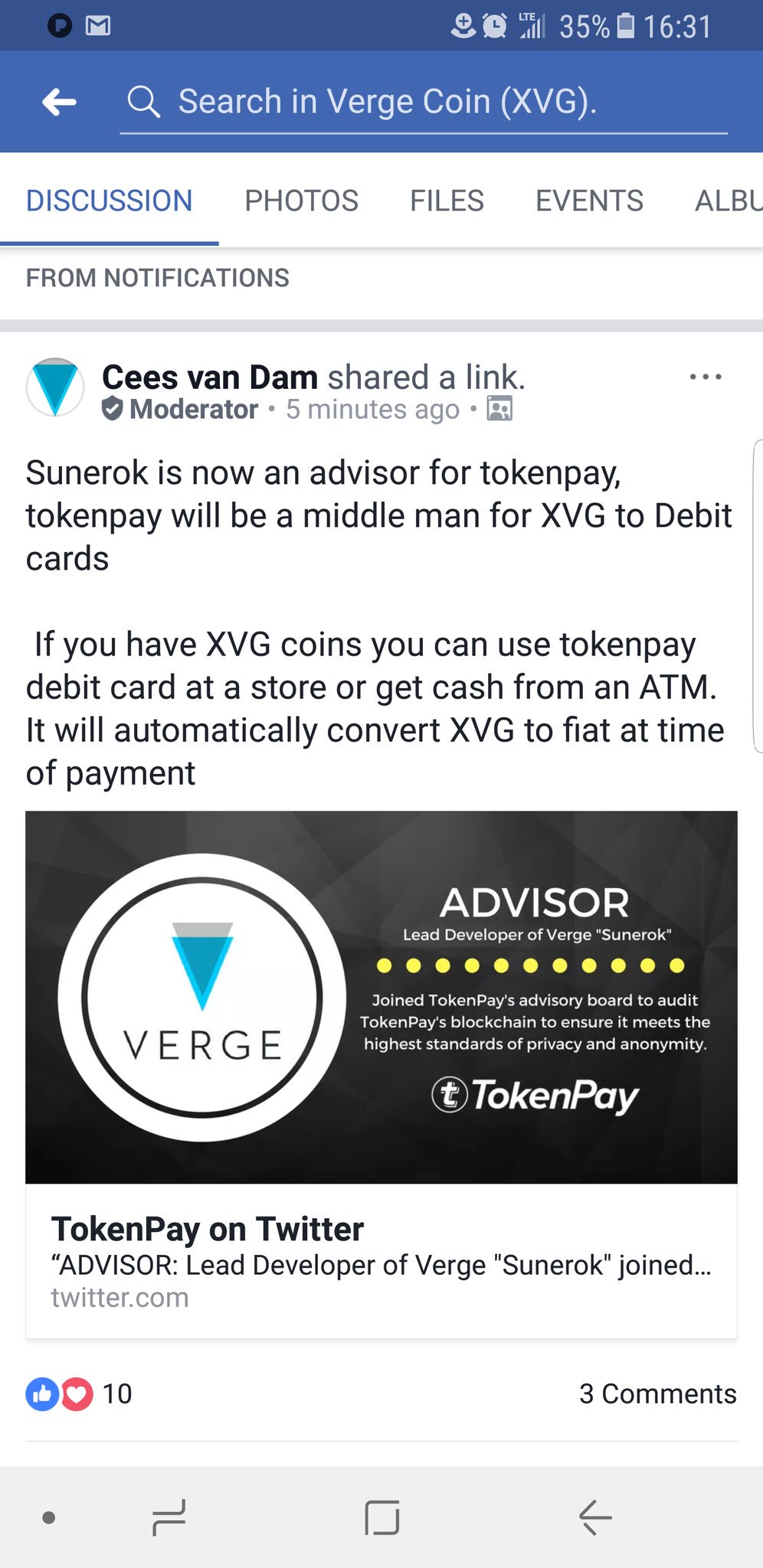 TokenPay could potentially become a solution to allow people to spend Verge on debit cards, according to a Facebook post from the TP team. Image courtesy of Reddit.