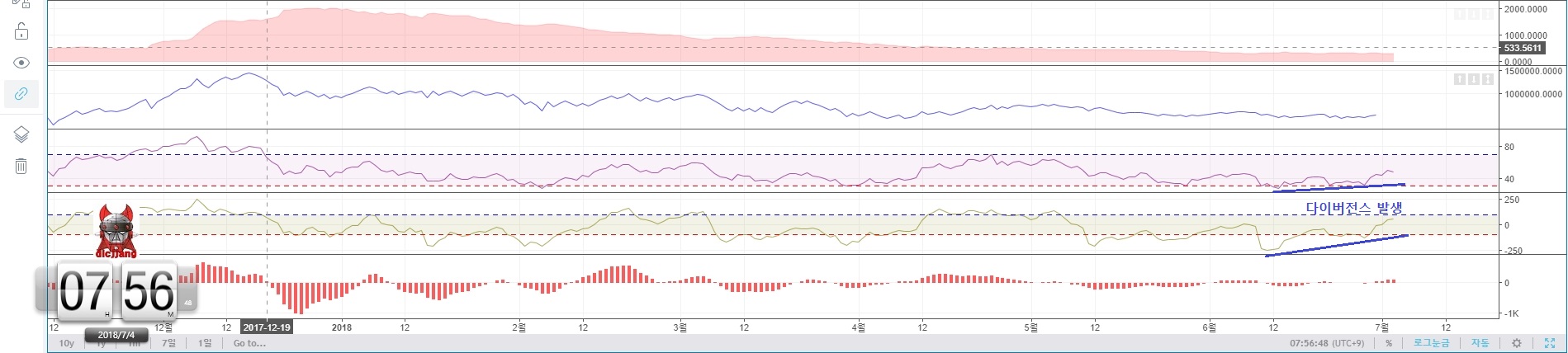 그리고 보조지표도 현재 계속 상승다이버전스를 나타내주고 있네요