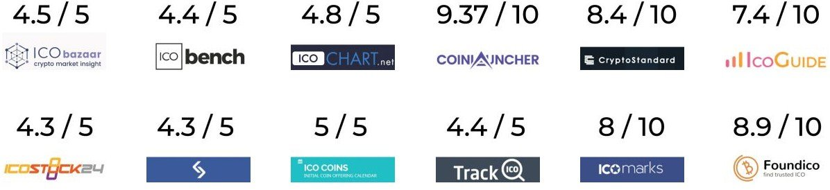 The project received high marks among a large number of ICO evaluation reviews and services: